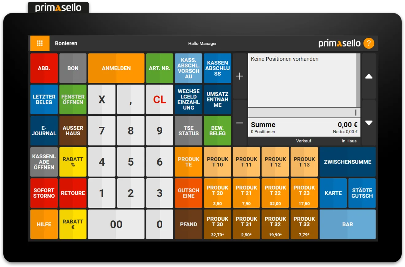 Umfassende Funktionen: Gutscheine, Rabatte, geteilte Zahlungen, Retouren, Kassenabschluss, Berichte (Tag/Monat/Jahr) u.v.m.