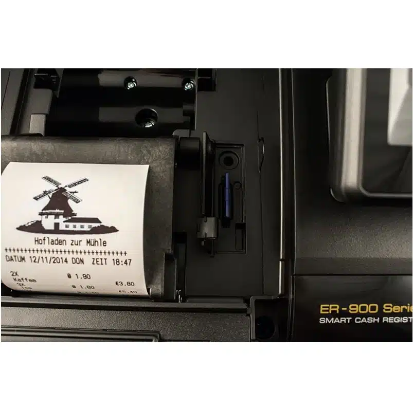 Bei dem Kassensystem Sam4s ER-925 von MultiData können auf der vorhandenen Hubtastatur 28 Direkttasten für Warengruppen/Artikel belegt werden. Insgesamt können bei einer flexiblen Speicheraufteilung insgesamt bis zu 5000 Artikel programmiert werden. Durch die vorhandenen Schnittstellen können weitere externe Geräte, wie z.B. Scanner, PC, externes Kundendisplay, EFT-Terminal angeschlossen werden. Auch ist der Schubladenunterbau von der Kasse trennbar.